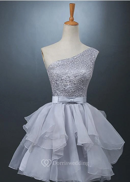 Lovely One-shoulder Short Chiffon Homecoming Dress Lace-up With Bowknot