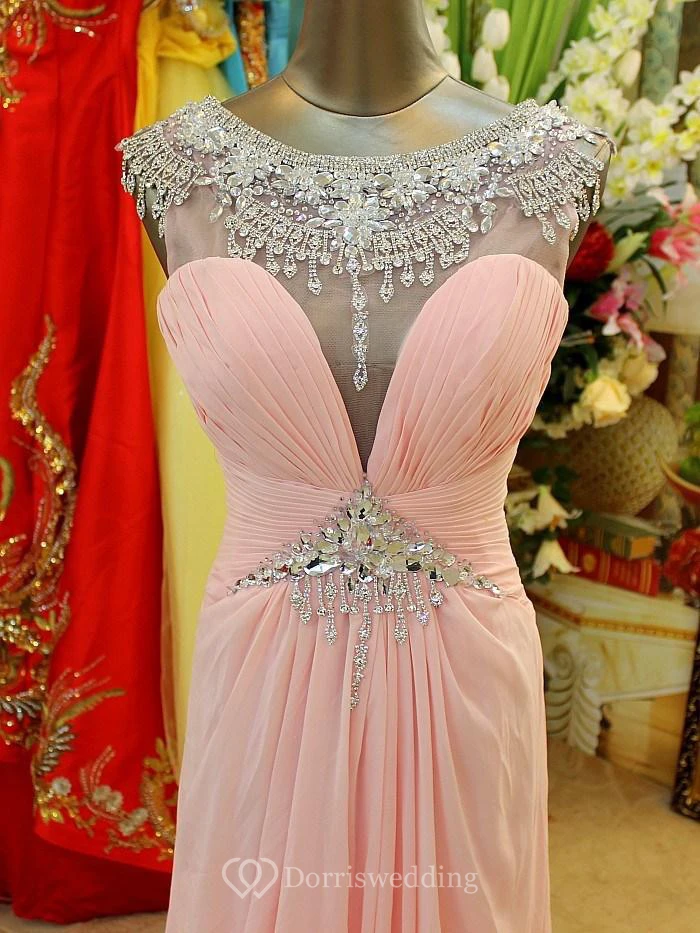 Lovely Pink Crystal Beadings Evening Dress Long Chiffon