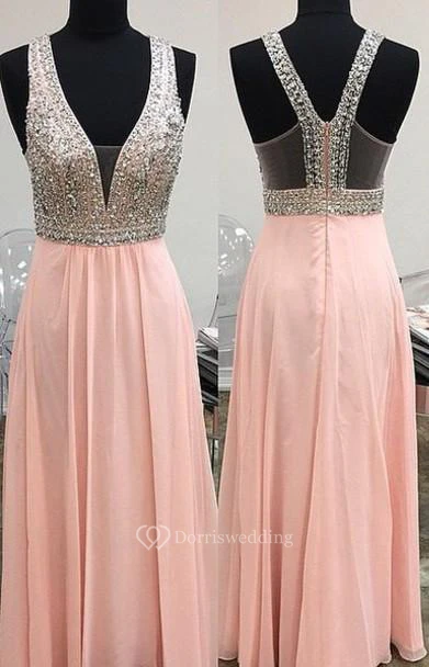 Lovely Pink Halter Prom Dress Long Chiffon With Beaidngs