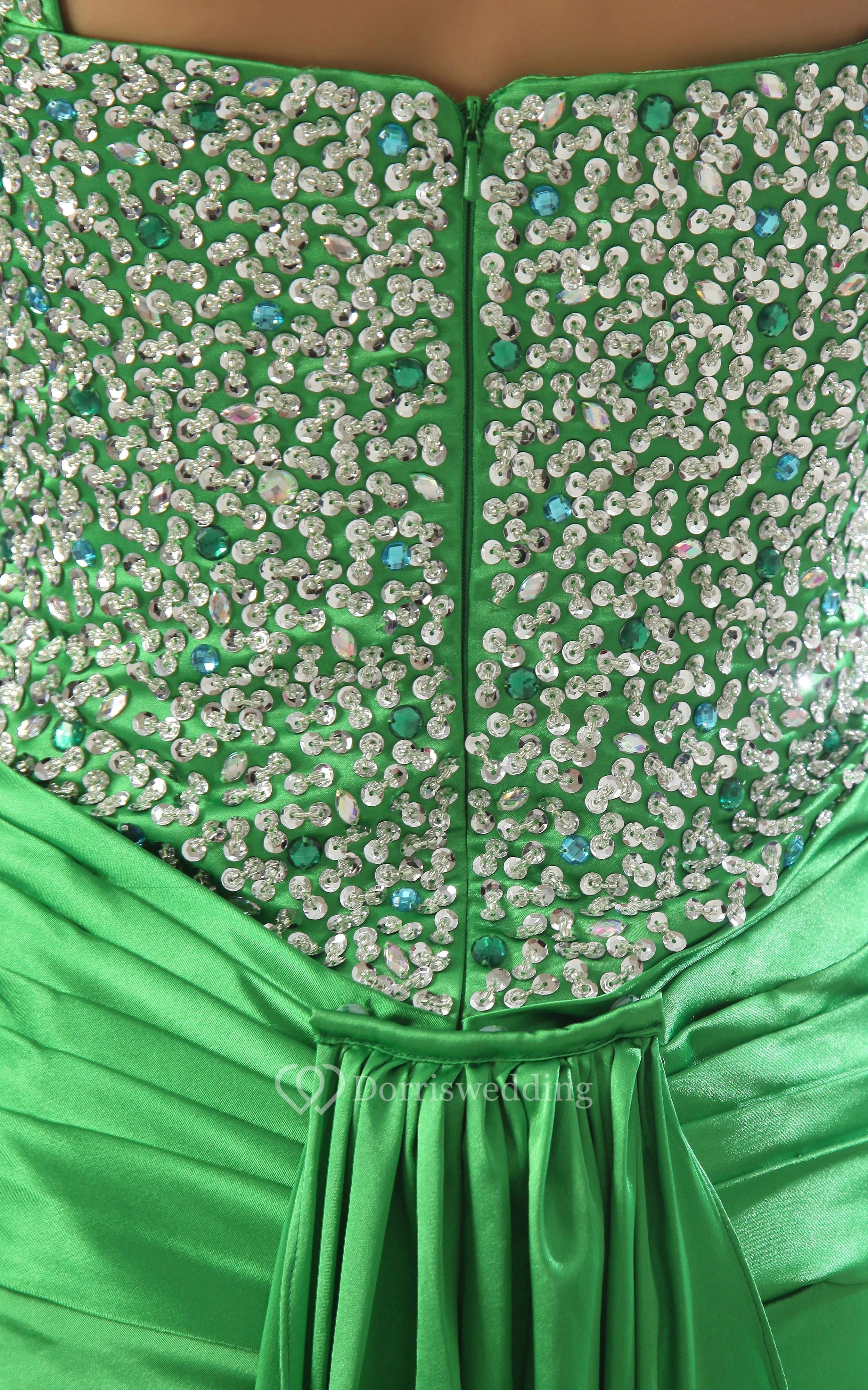Lovely Sleeveless Ruched Dress With Beading and Side Slit