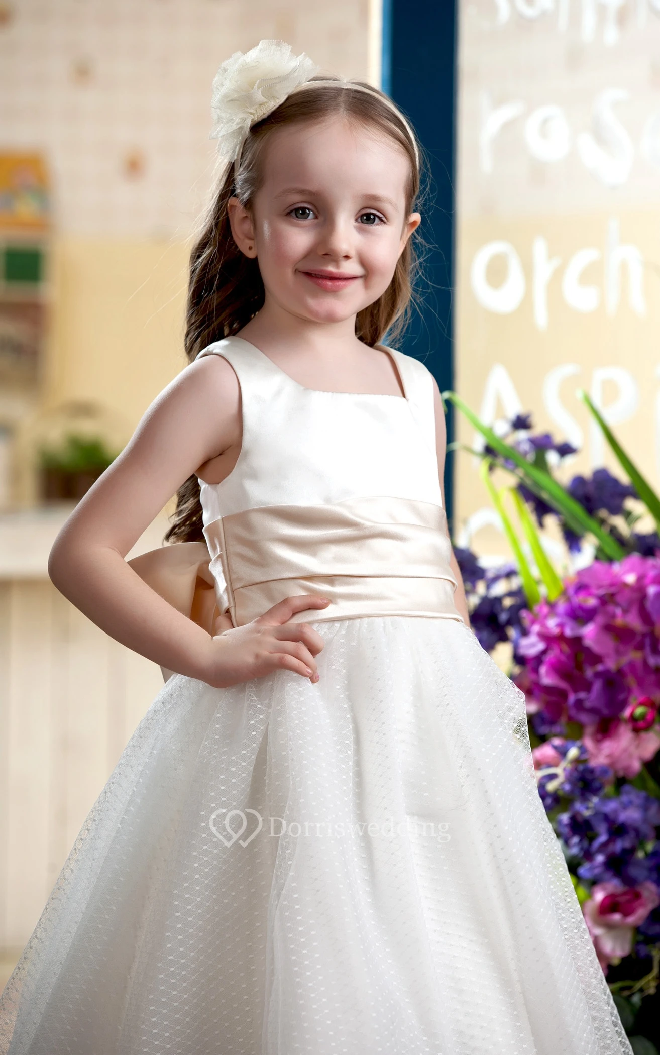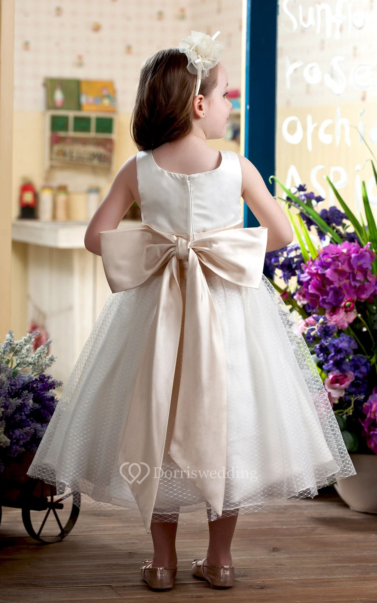 Lovely Sleeveless Tea-Length Flower Girl Dress With Bow