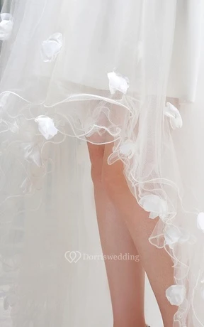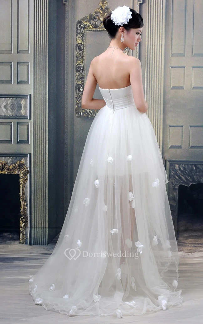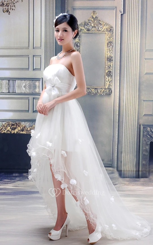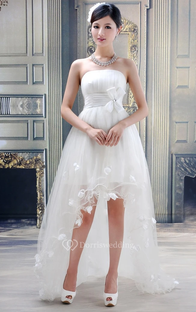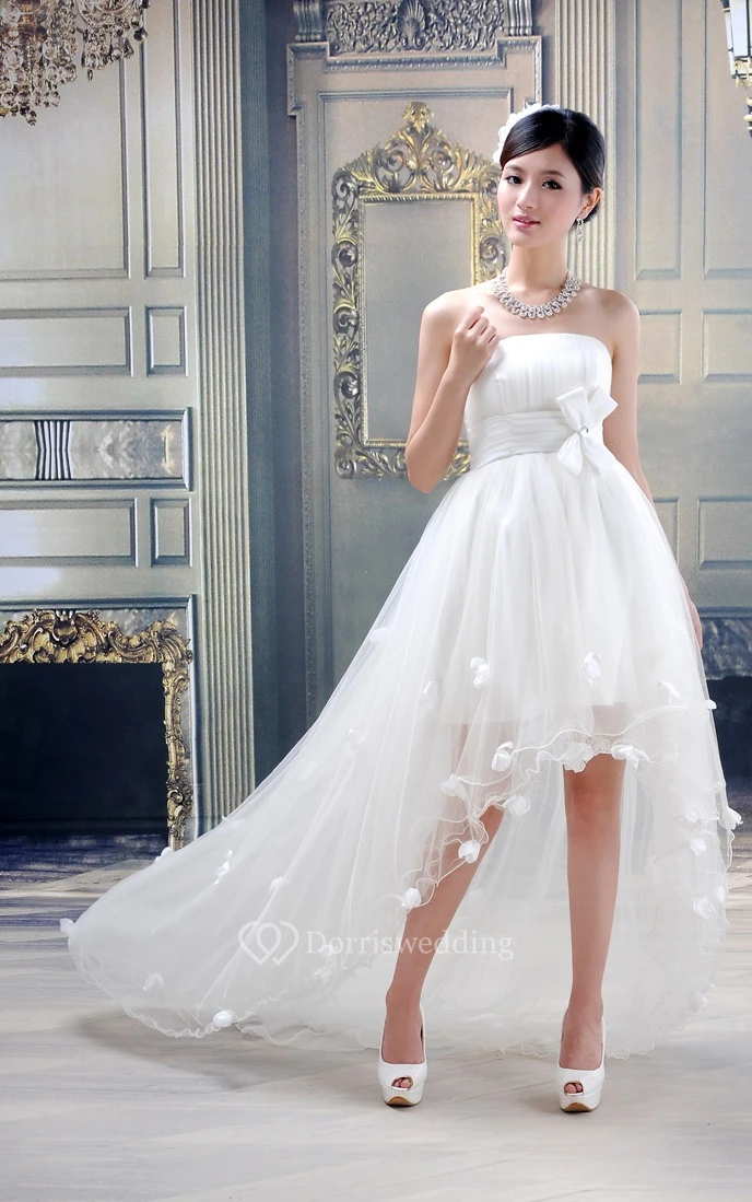 Lovely Strapless High-Low Tulle Dress With Bow and Flower