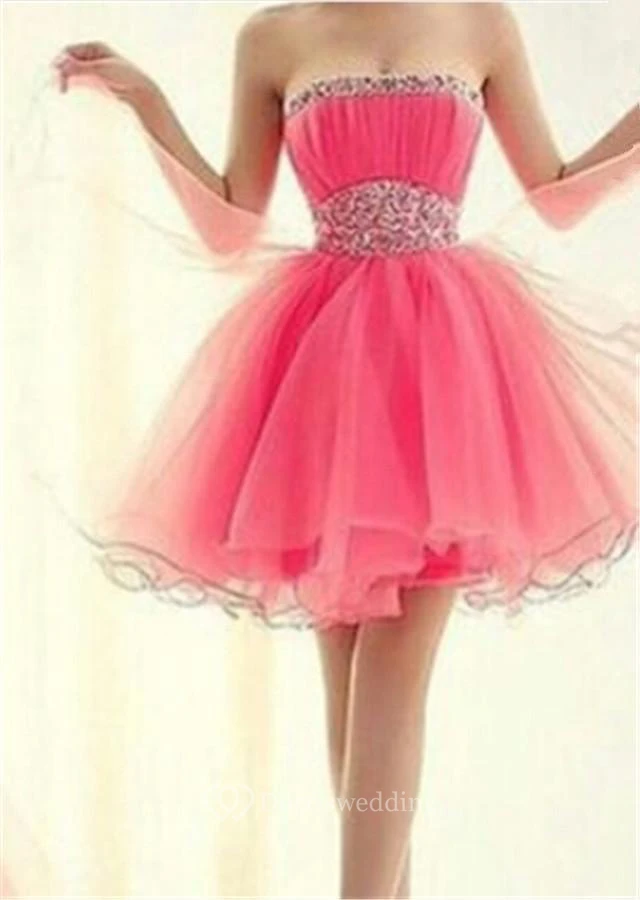 Lovely Strapless Sleeveless Organza Homecoming Dress Short With Beadings