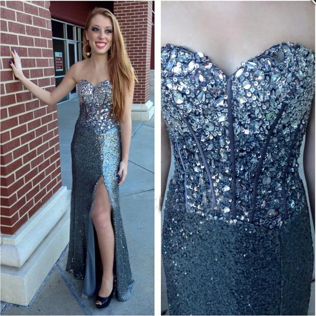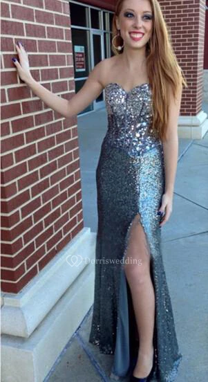 Luxurious Crystals Sequins Mermaid Prom Dress Front Split Sweetheart