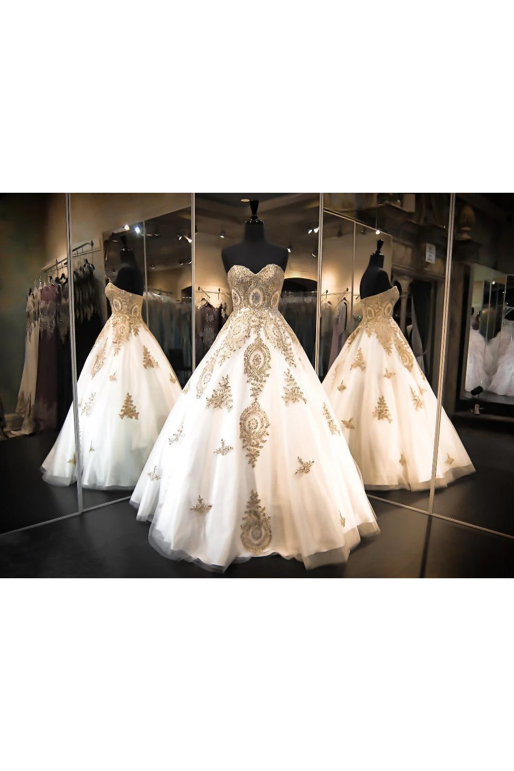Luxurious Sweetheart Golden Appliques Wedding Dress Beadings Ball Gown Prom Dress