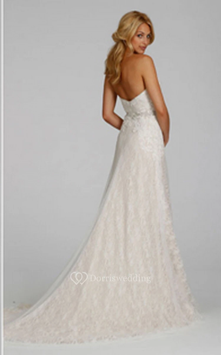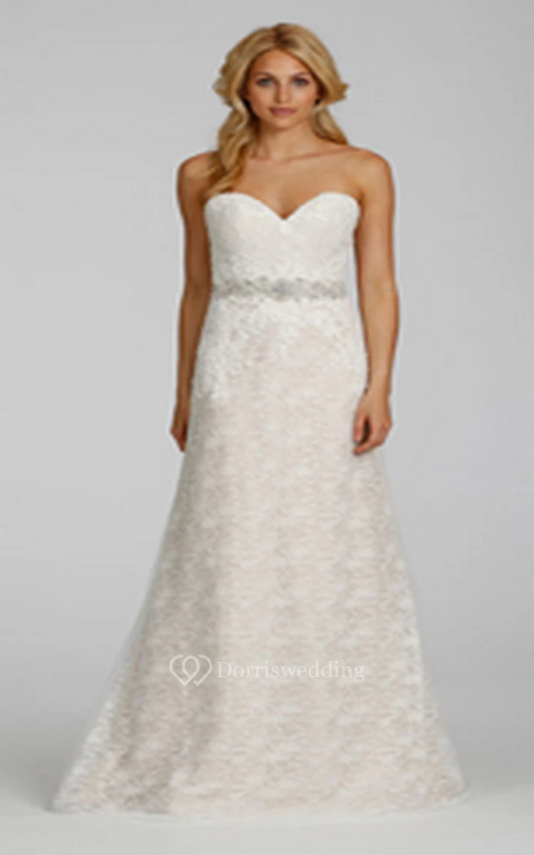 Luxurious Sweetheart Neckline Lace Dress With Crystal Beaded Belt