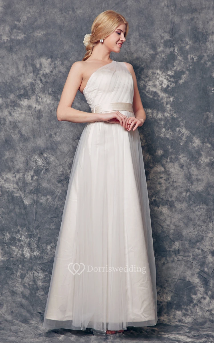 Magical One Shoulder Pleated Long Tulle Dress With Ruching