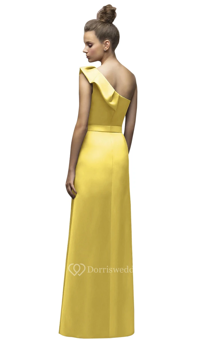 Magnificent One-Shoulder Floor-Length Satin Dress