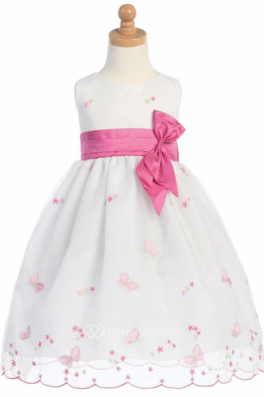Tea-Length Embroideried Bowed Organza&Taffeta Flower Girl Dress With Split