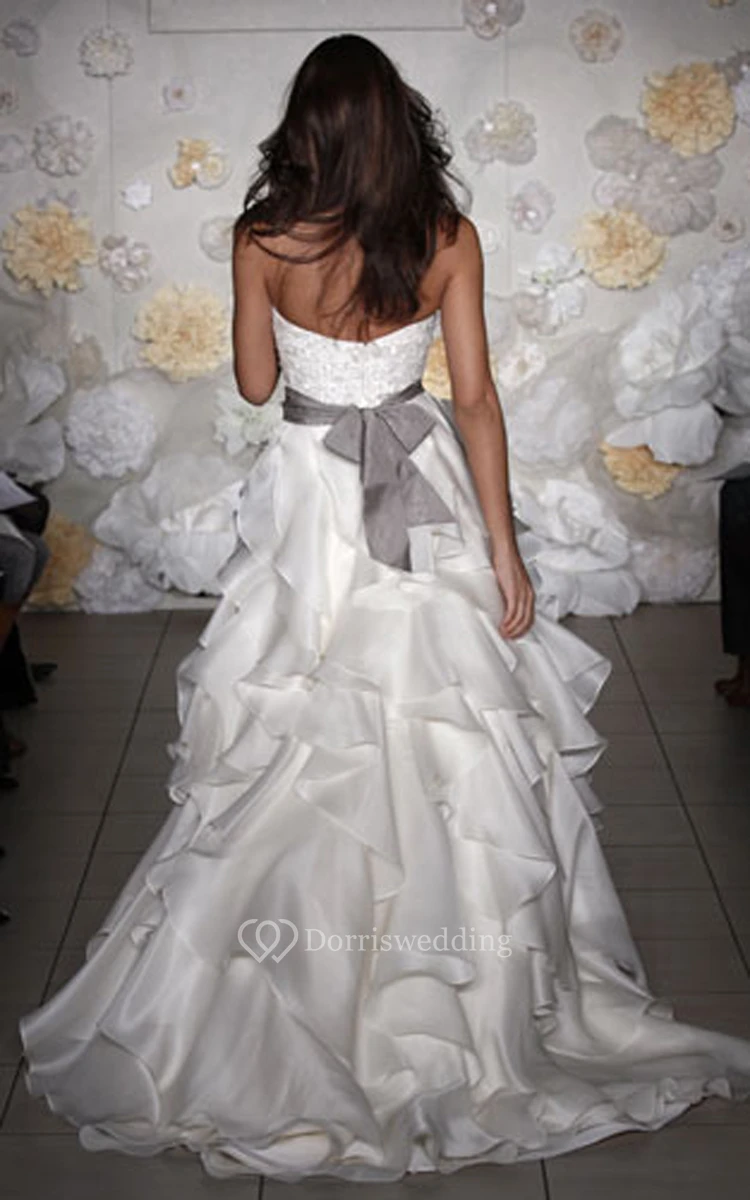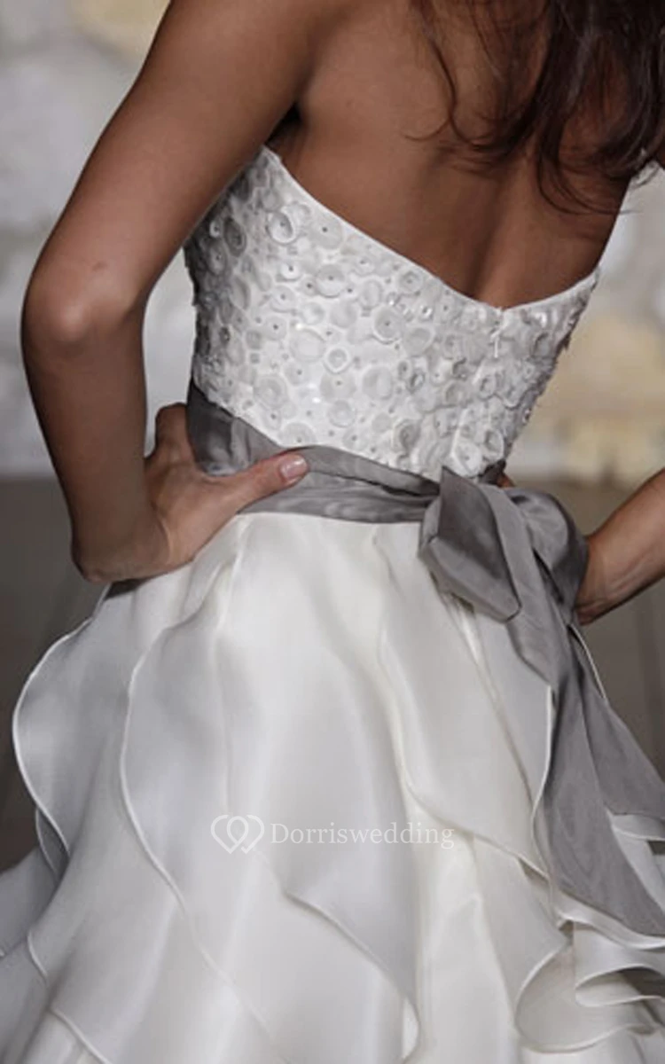Magnificent Strapless Embroidered Bodice Organza Ruffle Dress With Ribbon