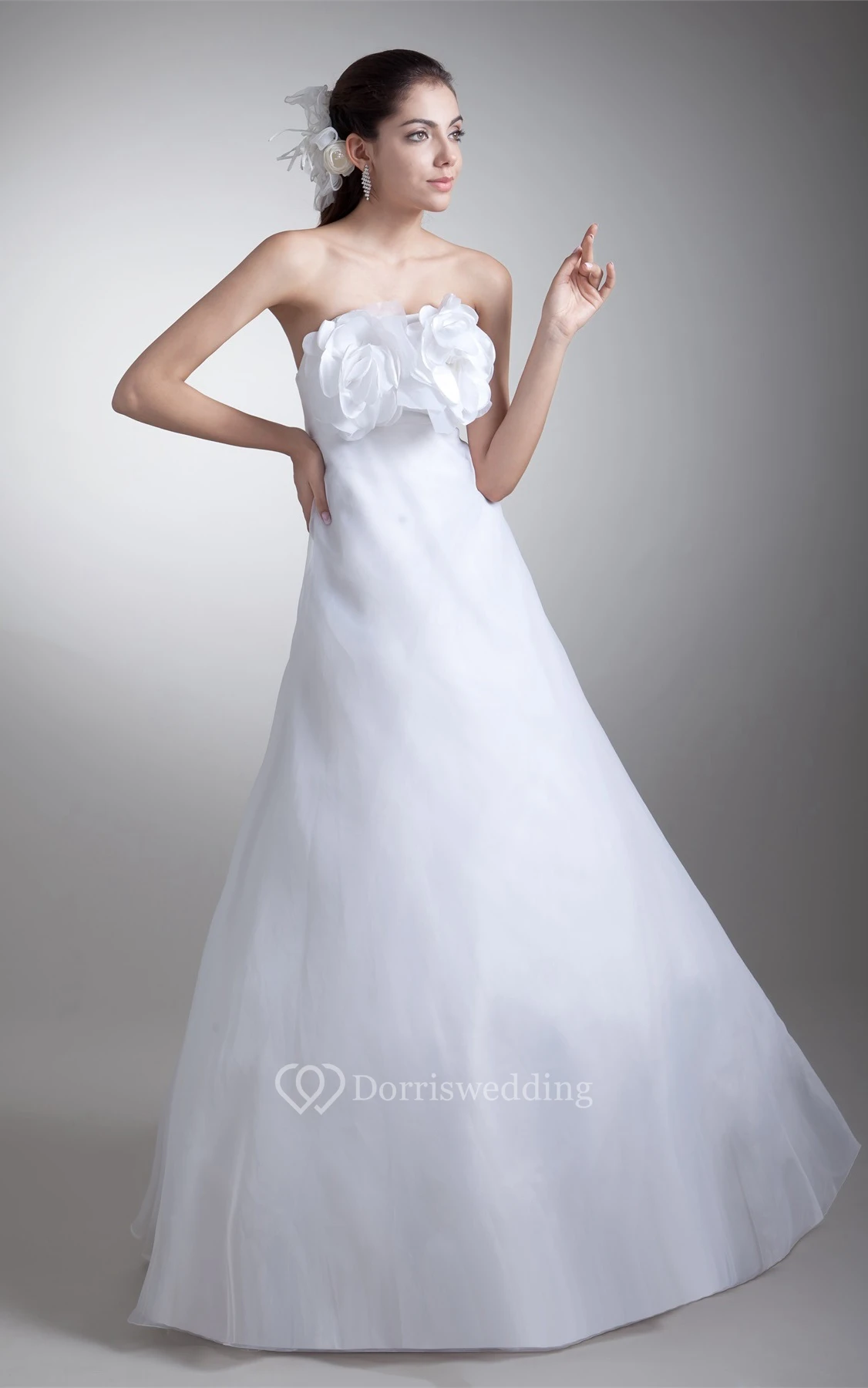 Magnificent Strapless Satin Organza a Line Sleeveless Wedding Dresses
