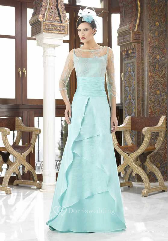 Maxi 3-4 Sleeve Illusion Bateau Neck Chiffon Mother Of The Bride Dress