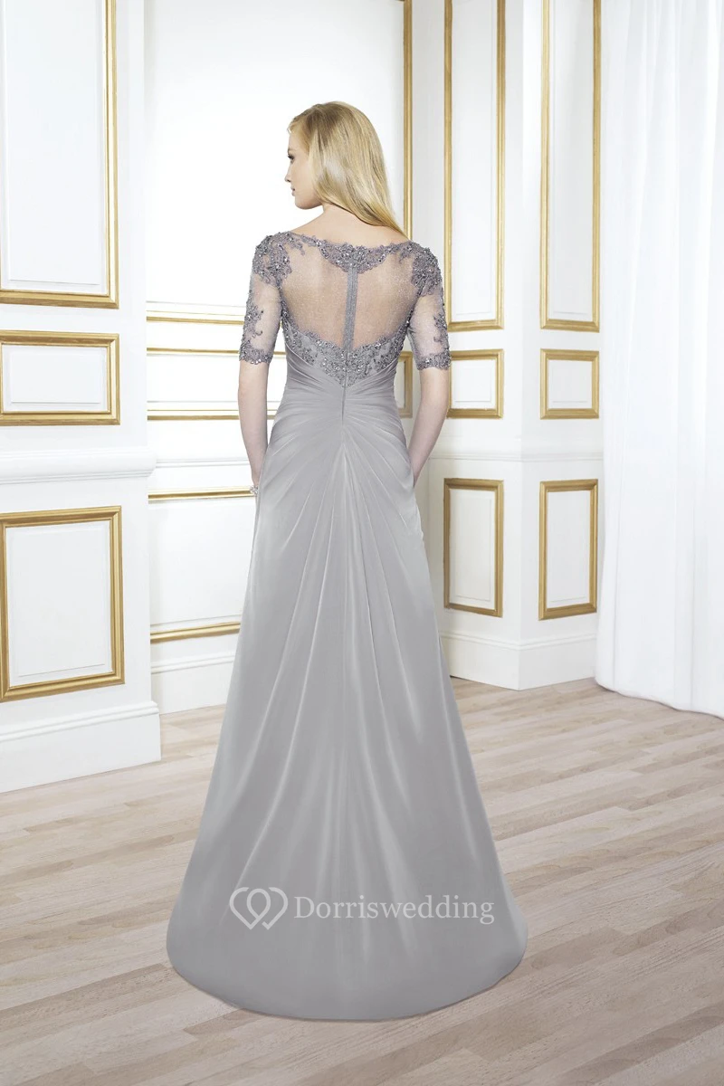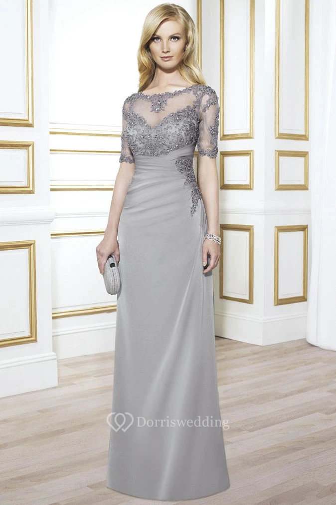 Maxi Appliqued Short Sleeve Bateau Neck Chiffon Formal Dress