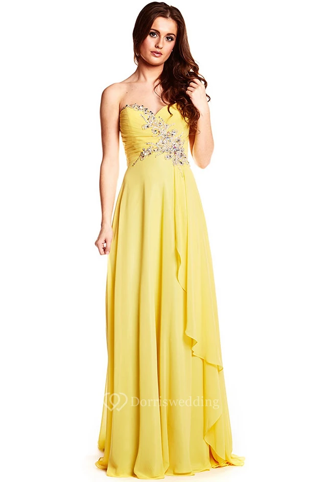 Maxi Beaded Sleeveless Sweetheart Chiffon Prom Dress