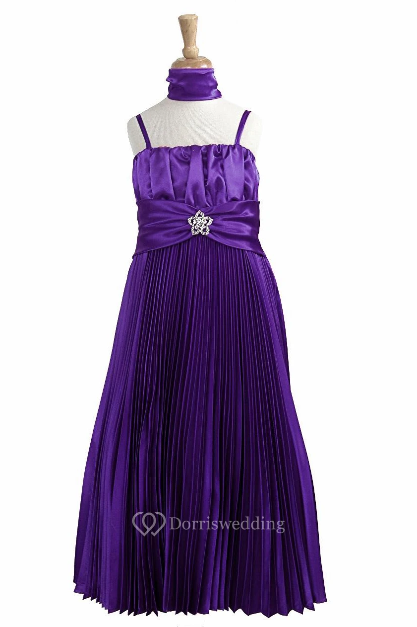 Maxi Cape Pleated Satin Flower Girl Dress With Broach