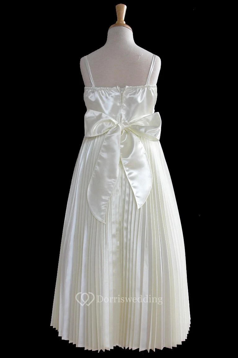 Maxi Cape Pleated Satin Flower Girl Dress With Broach