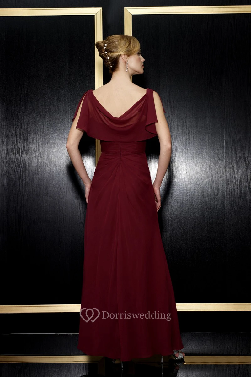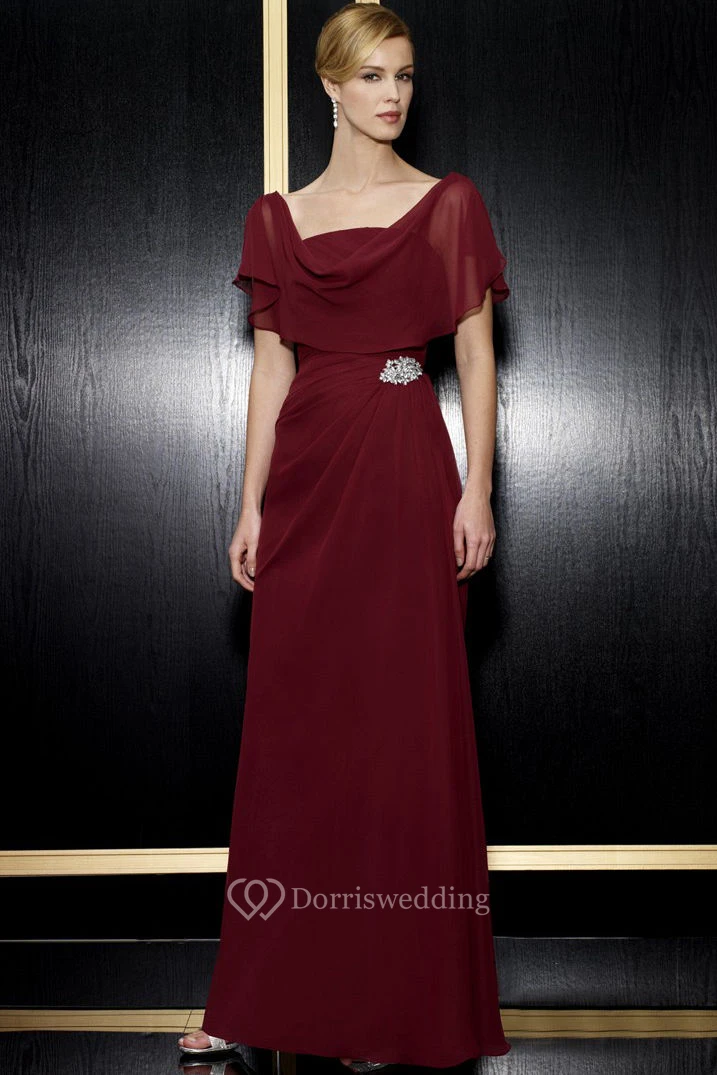 Maxi Cowl Poet-Short-Sleeve Broach Chiffon Formal Dress With Low-V Back