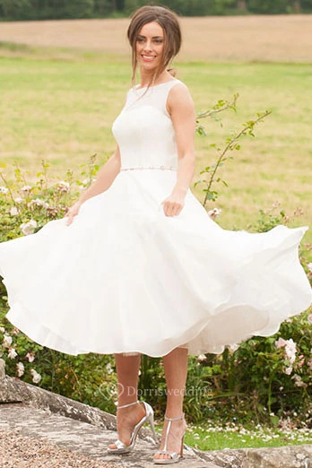 Maxi High Neck Jeweled Chiffon Wedding Dress With Appliques And Illusion