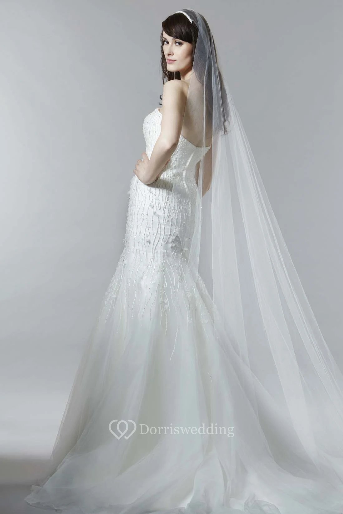 Maxi Mermaid Beaded Sweetheart Sleeveless Tulle Wedding Dress