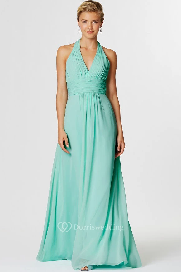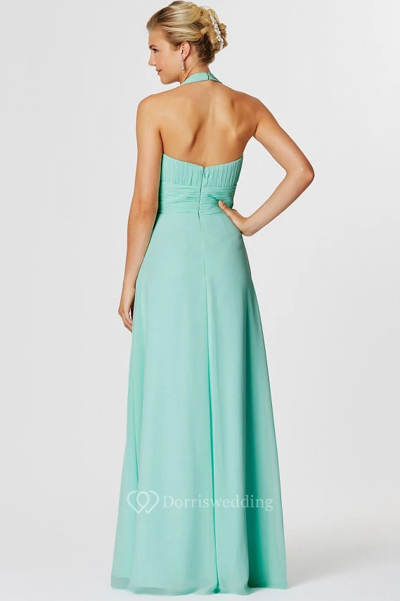 Maxi Ruched Halter Sleeveless Chiffon Bridesmaid Dress