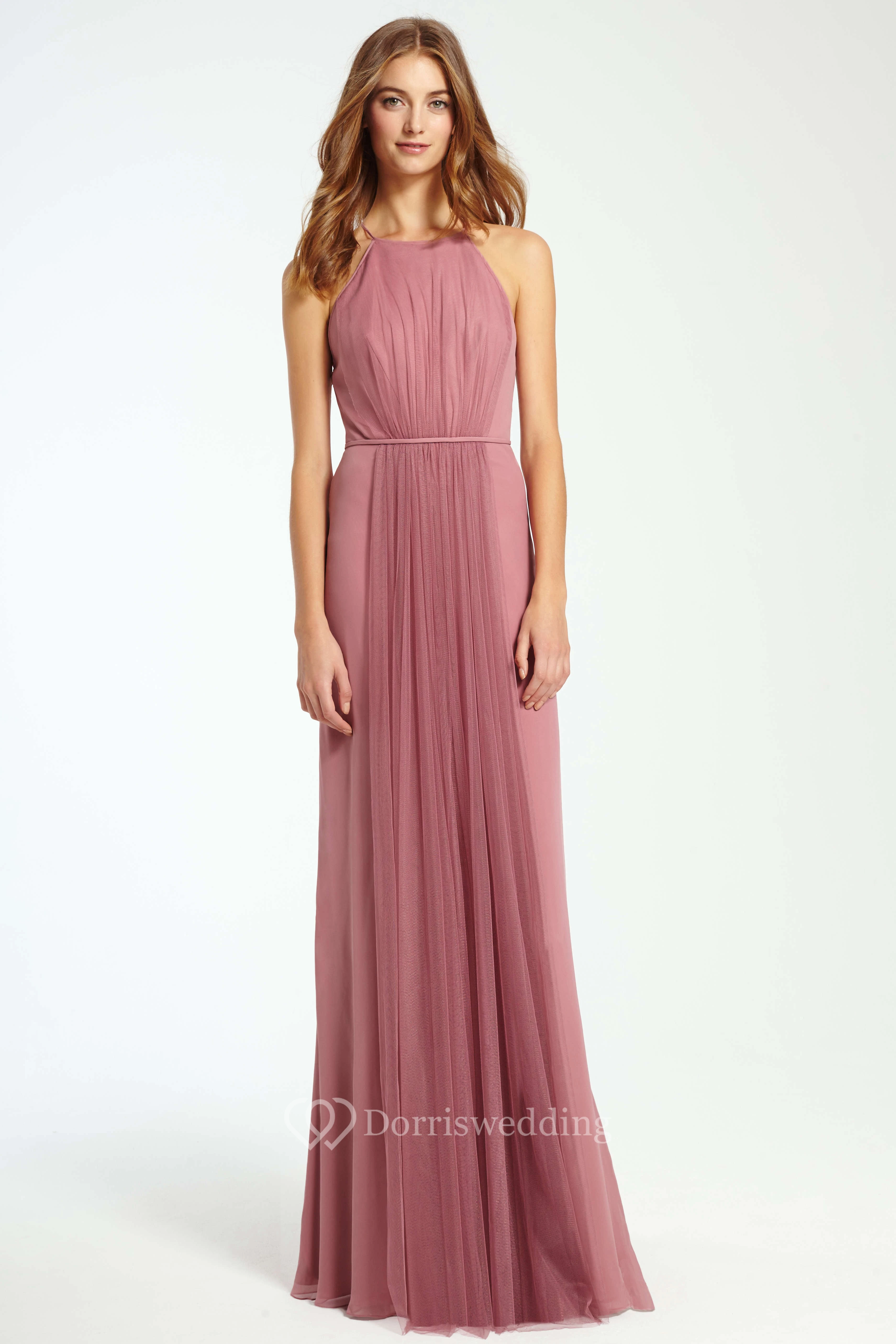 Maxi Ruched Sleeveless High Neck Tulle Bridesmaid Dress