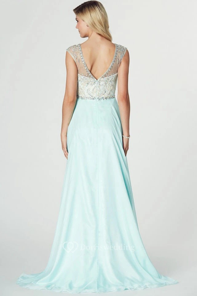 Maxi Sleeveless Beaded Jewel Neck Chiffon Prom Dress