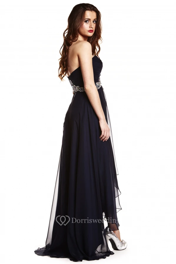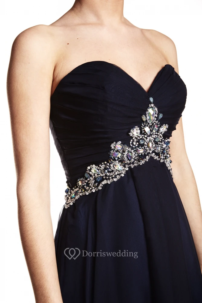 Maxi Sleeveless Sweetheart Ruched Chiffon Prom Dress With Beading