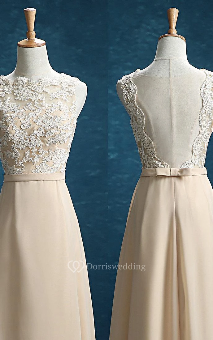 Maxi Strapped Chiffon Dress With Lace And Belt