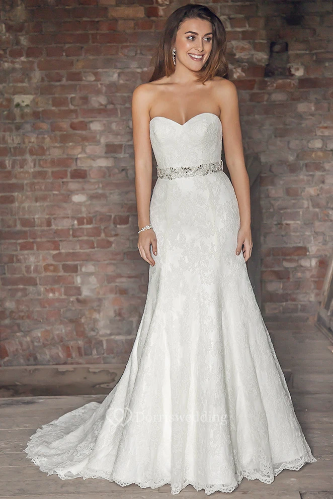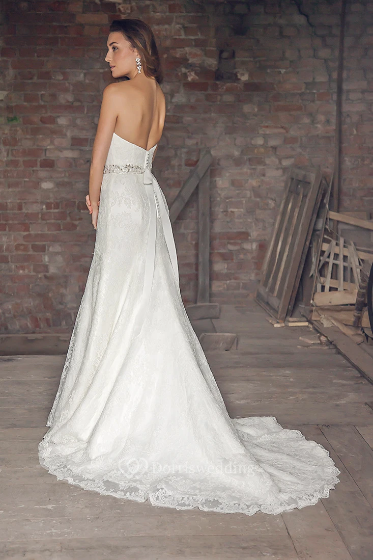 Maxi Sweetheart Appliqued Bowed Lace Wedding Dress With Court Train