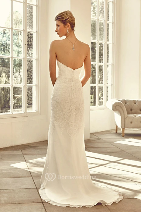 Maxi Sweetheart Appliqued Lace Wedding Dress With Sweep Train
