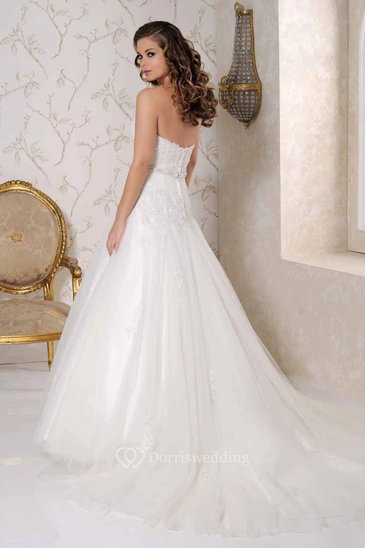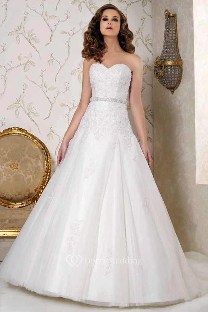 Maxi Sweetheart Appliqued Tulle Wedding Dress With Chapel Train And Backless