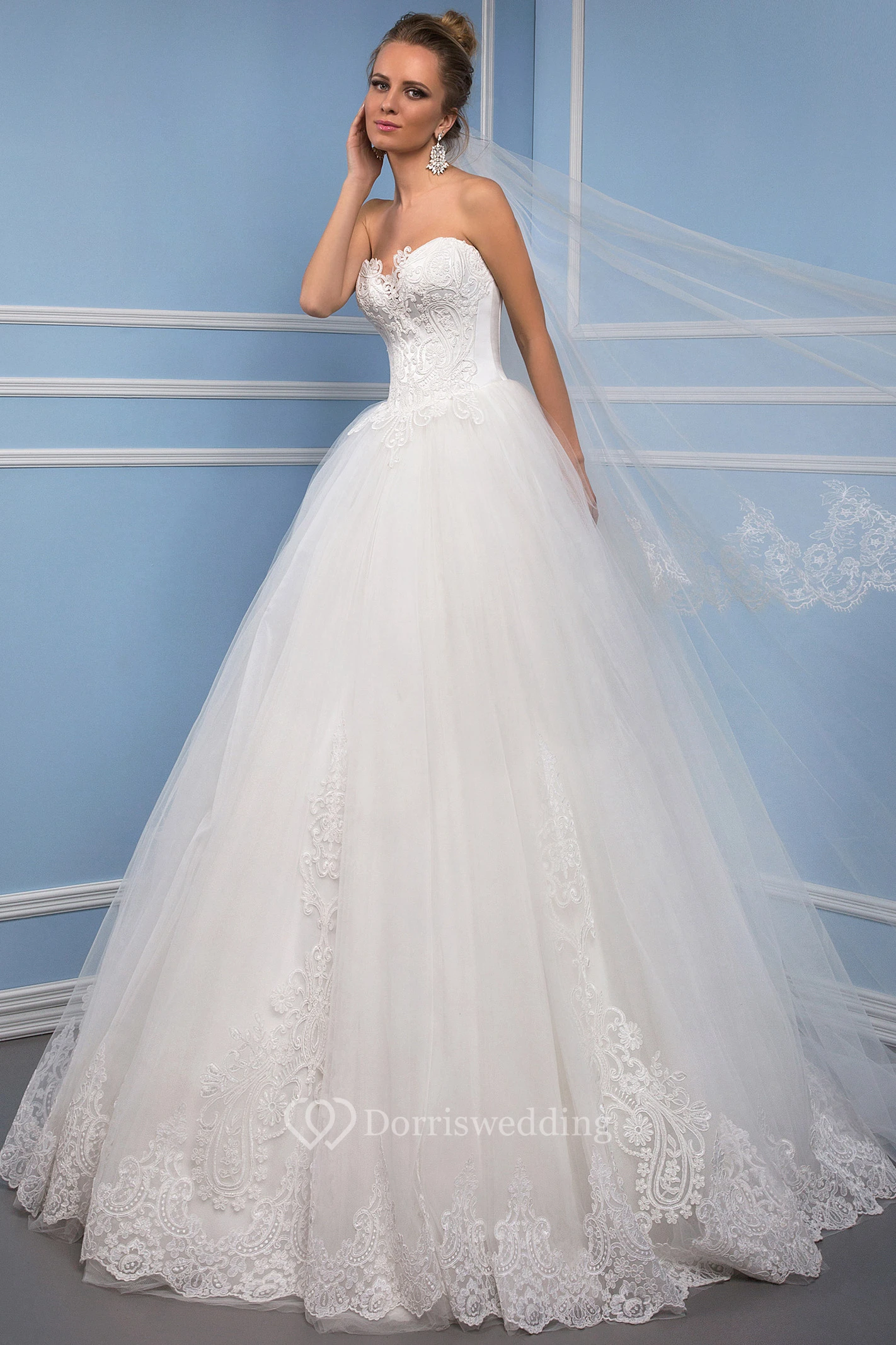 Maxi Sweetheart Appliqued Tulle Wedding Dress With Sweep Train And Corset Back