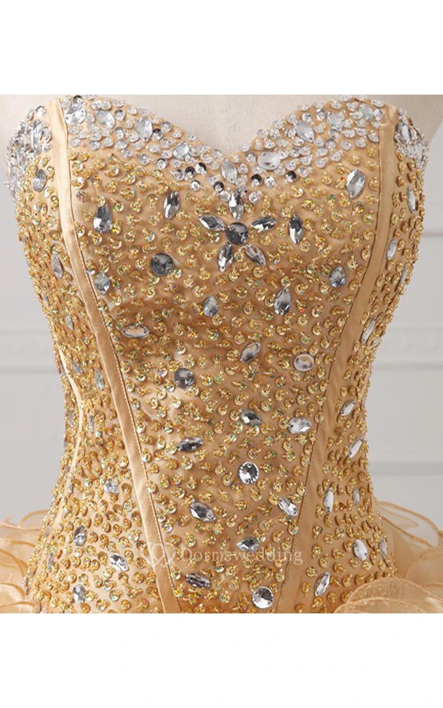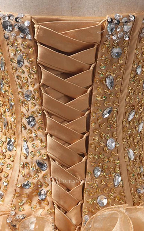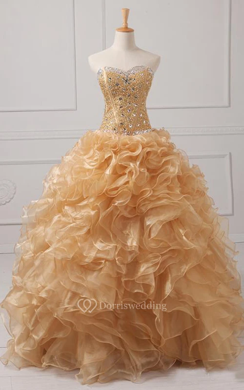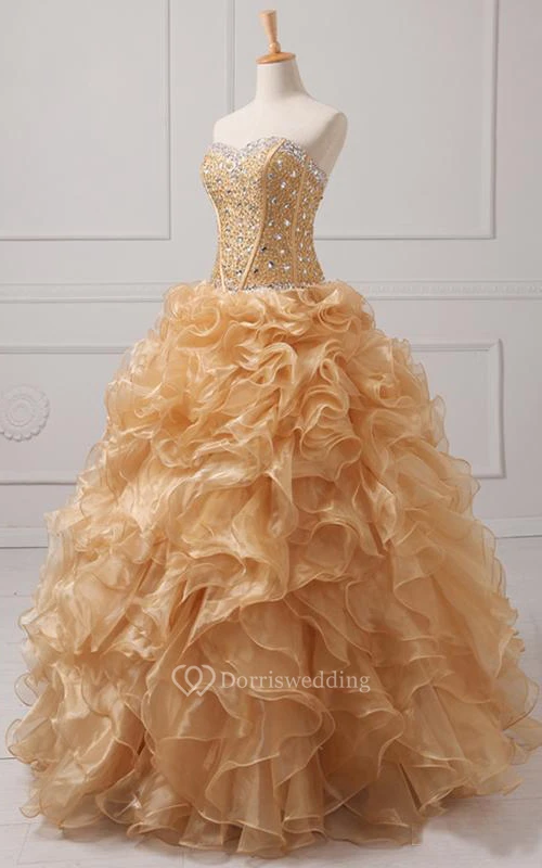 Maxi Sweetheart Beading Ruffles Zipper Corset Back Lace Organza Dress
