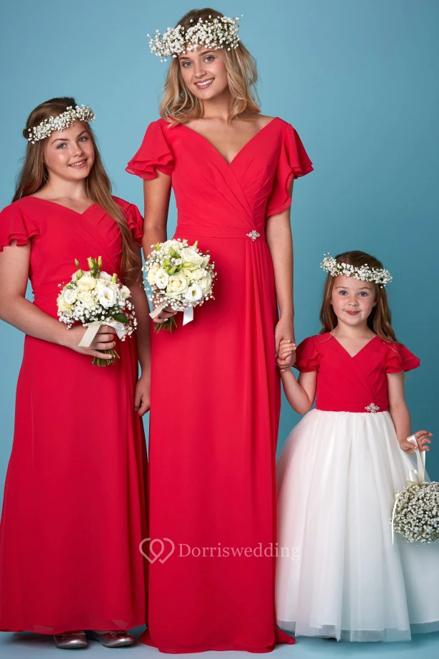 Maxi V-Neck Ruched Sleeveless Chiffon Bridesmaid Dress