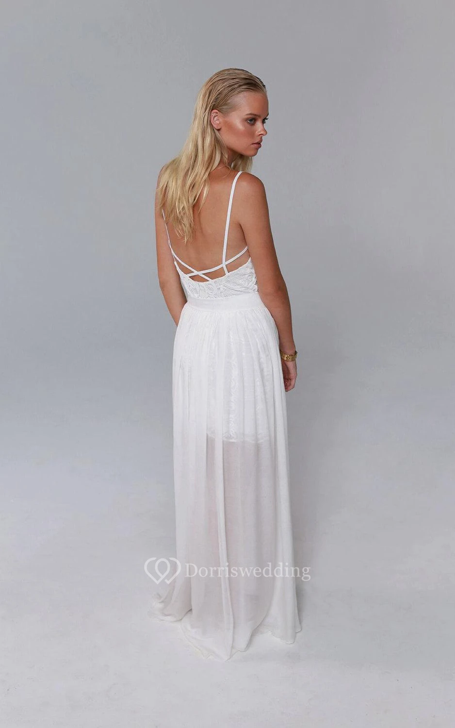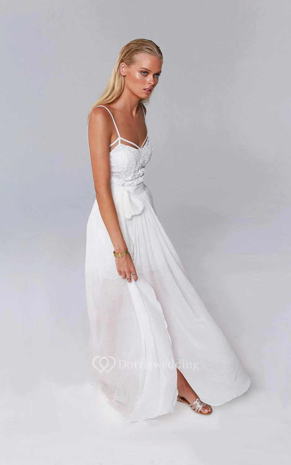 Spaghetti Split Front Chiffon Floor-Length Dress