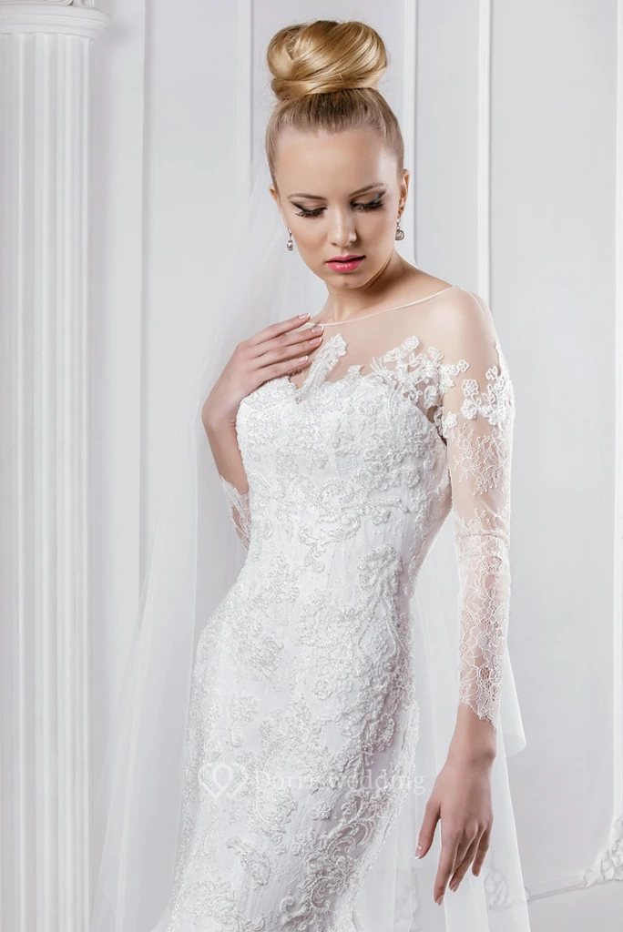 Mermaid Appliqued Bateau Neck Long Sleeve Lace Wedding Dress