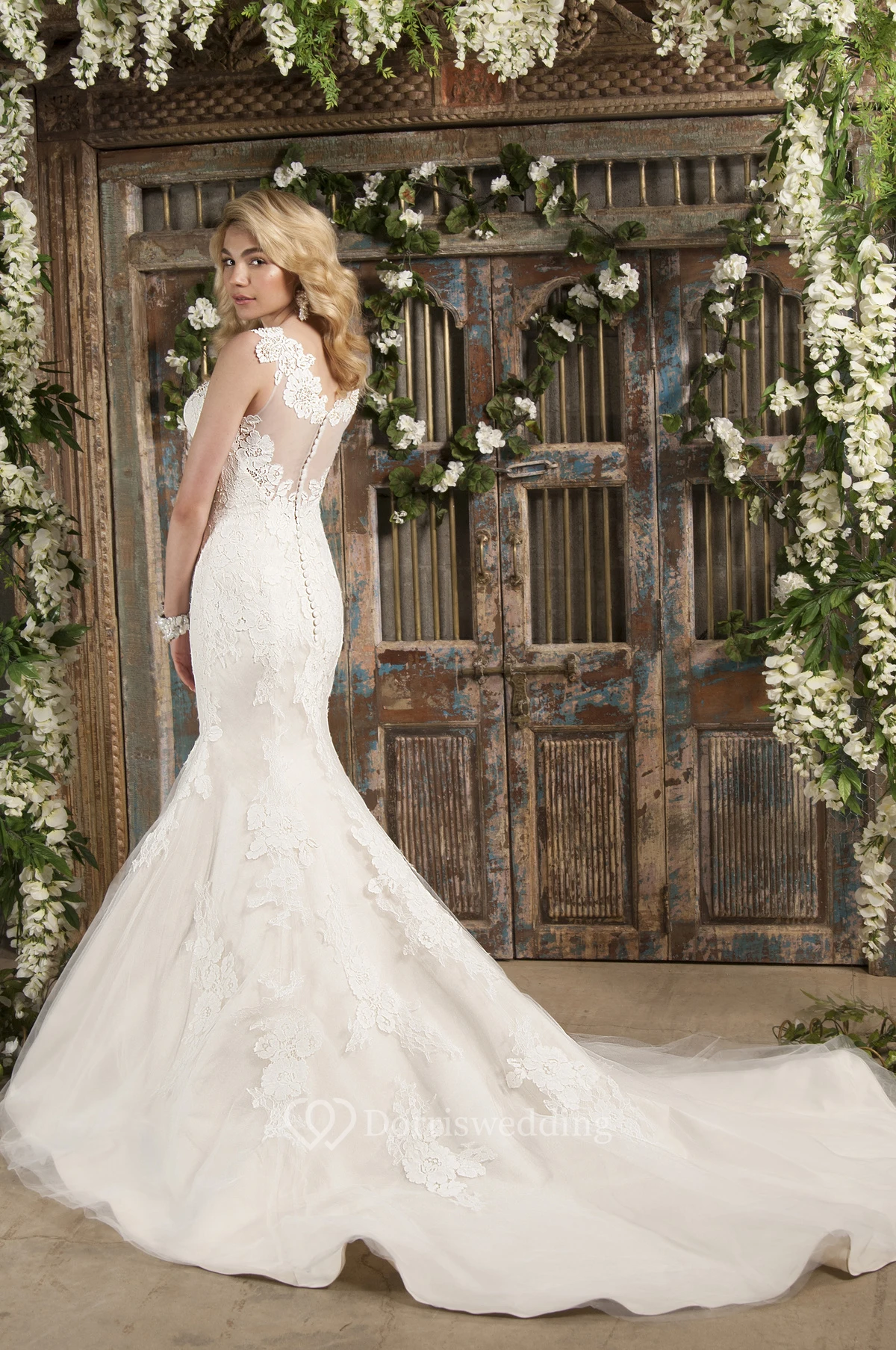 Mermaid Appliqued Scoop Neck Sleeveless Lace Wedding Dress With Chapel Train