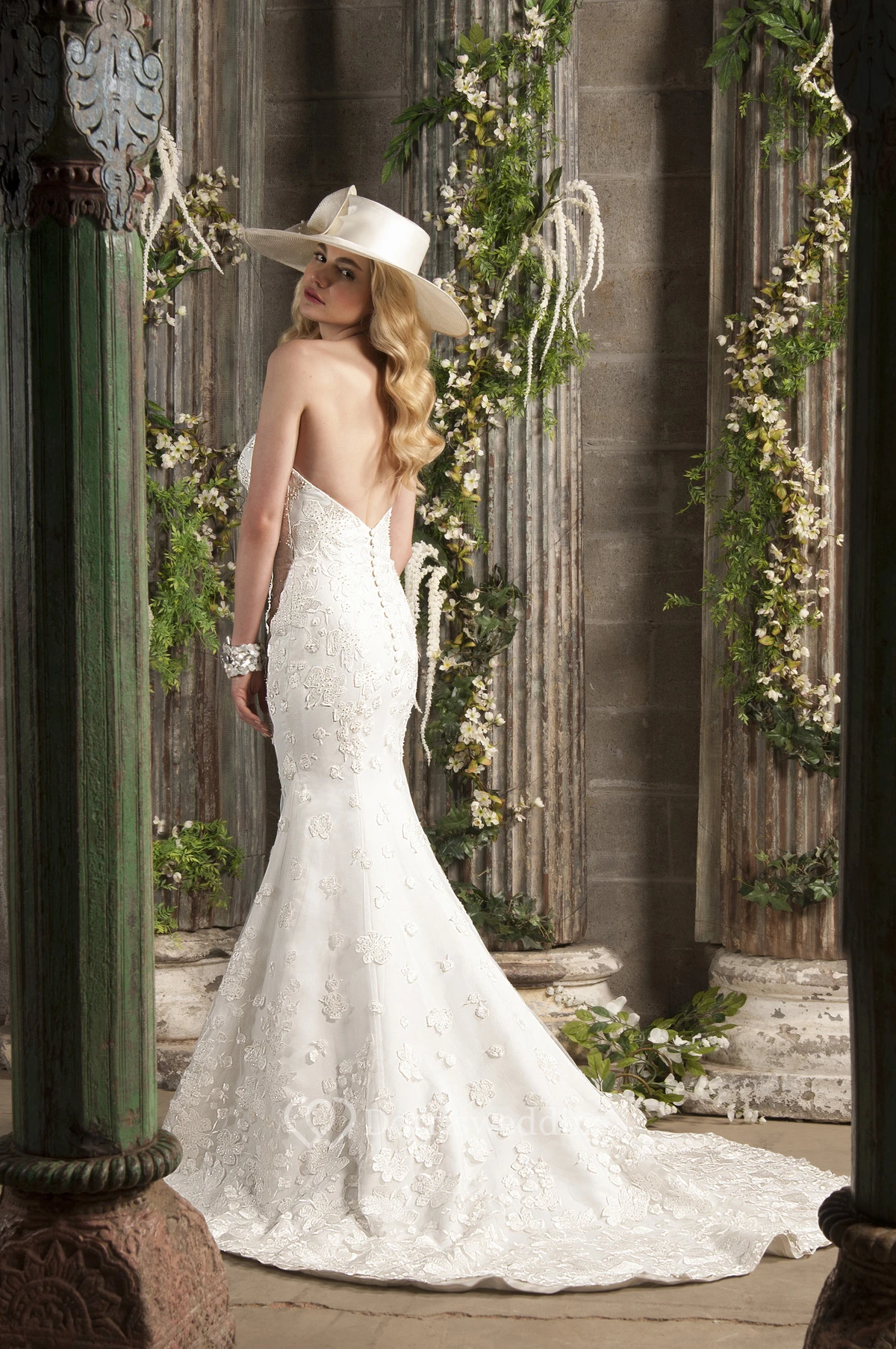 Mermaid Appliqued Sleeveless Sweetheart Lace Wedding Dress With Court Train