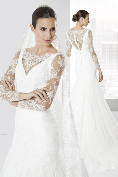 Mermaid Bateau-Neck Long-Sleeve Lace Wedding Dress With Illusion