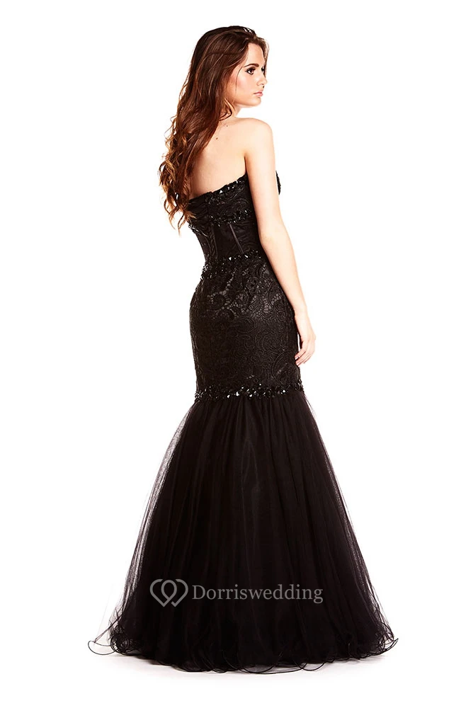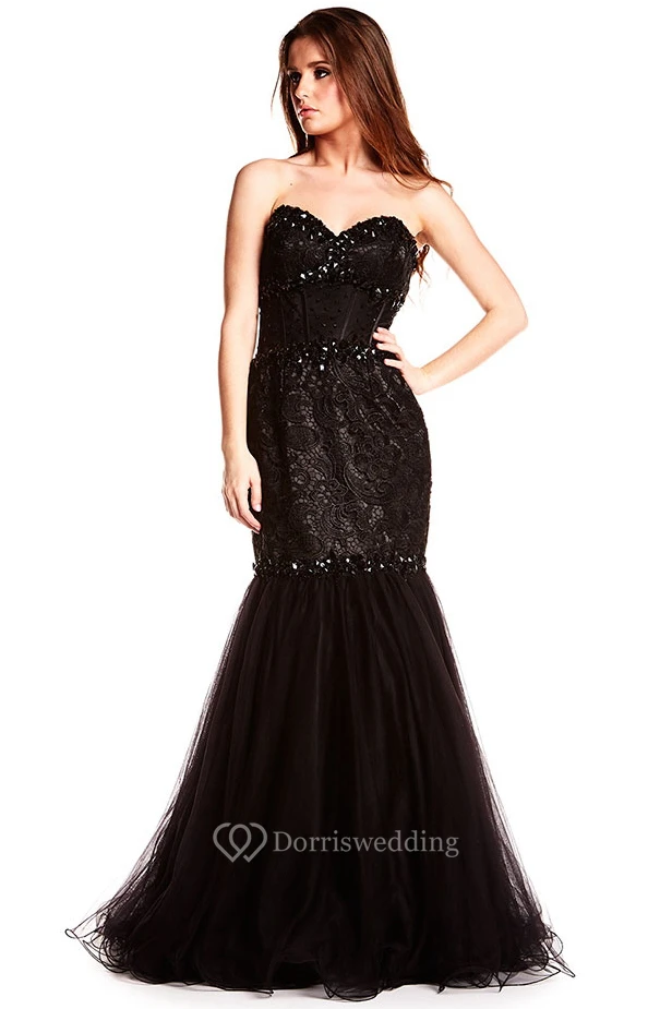 Mermaid Beaded Floor-Length Sleeveless Sweetheart Tulle Prom Dress With Backless Style And Lace