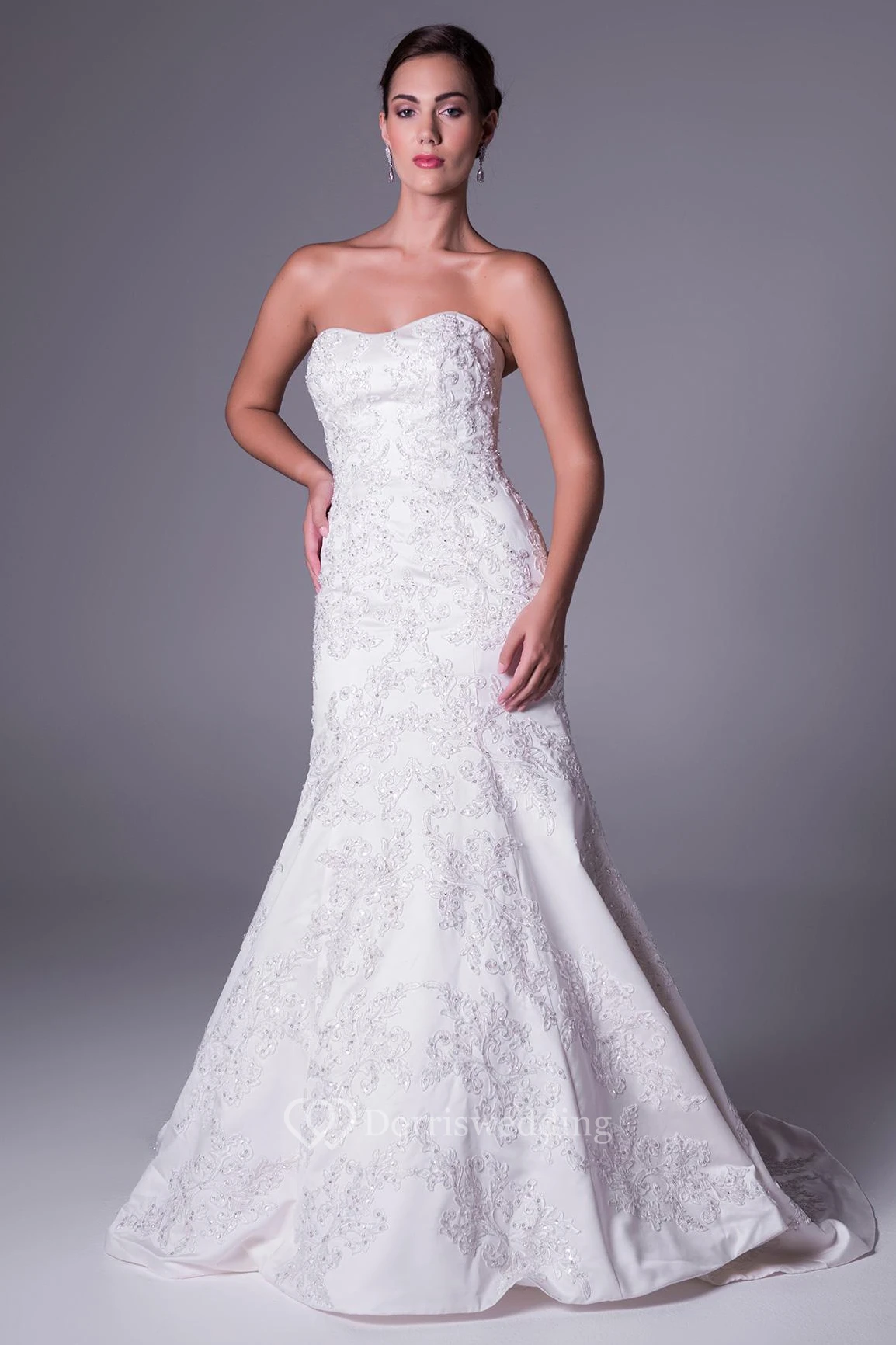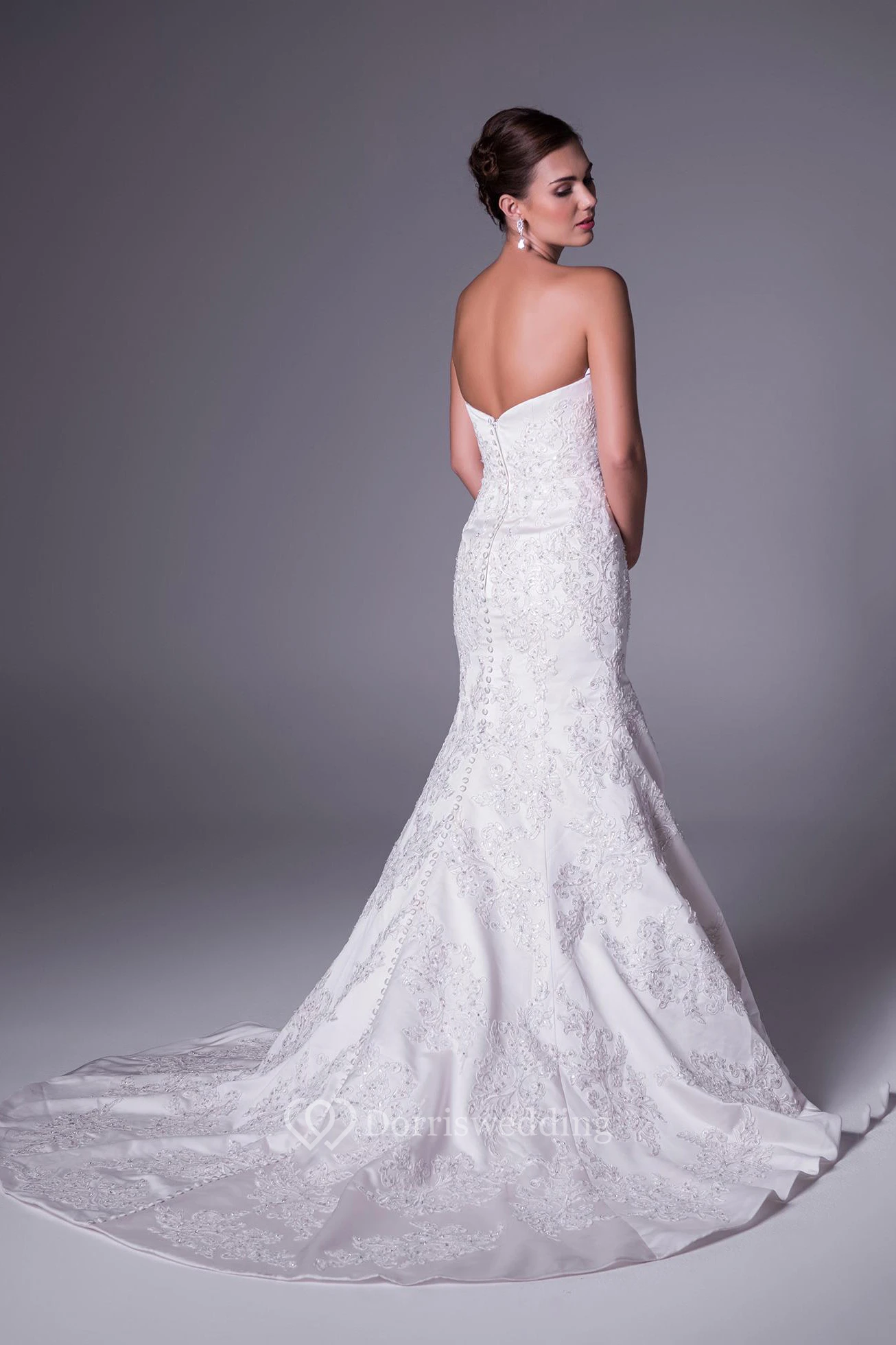 Mermaid Beaded Strapless Satin Wedding Dress