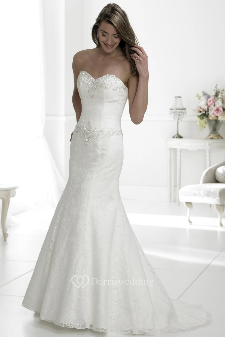 Mermaid Beaded Sweetheart Sleeveless Floor-Length Lace Wedding Dress
