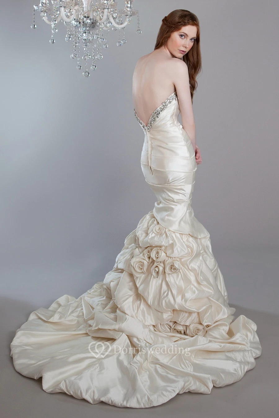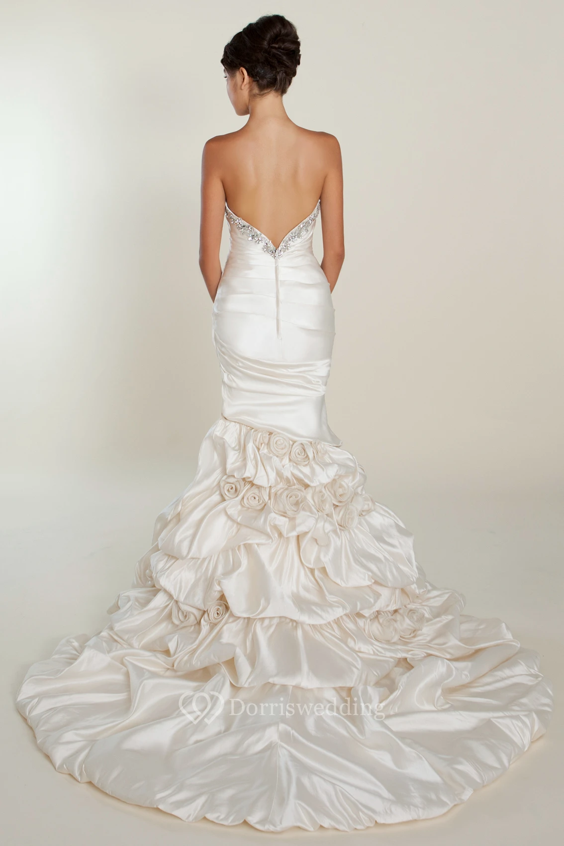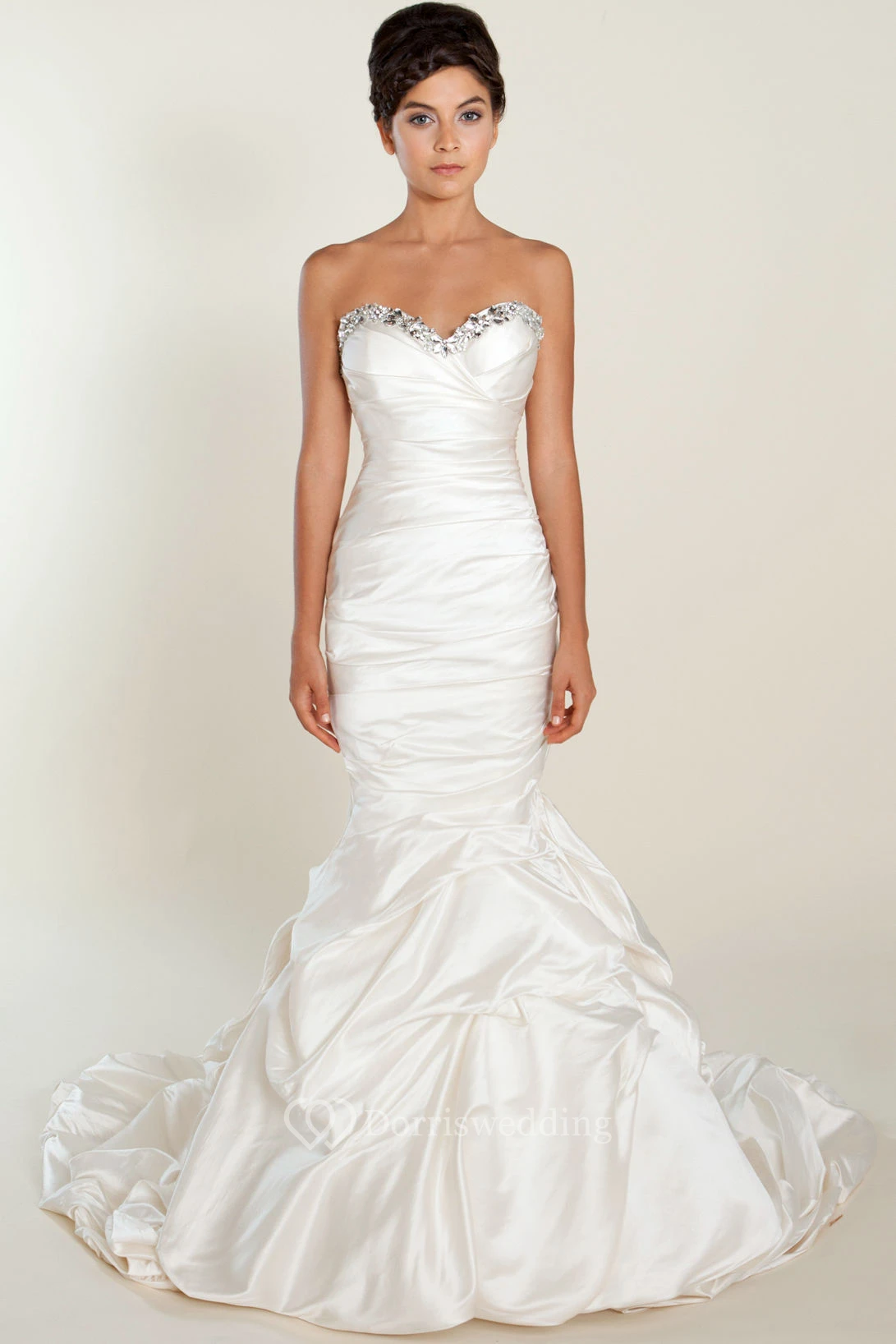 Mermaid Beaded Sweetheart Sleeveless Satin Wedding Dress
