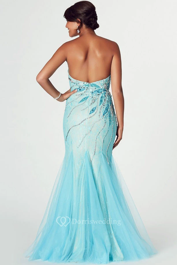 Mermaid Beaded Sweetheart Sleeveless Tulle Prom Dress With Low-V Back