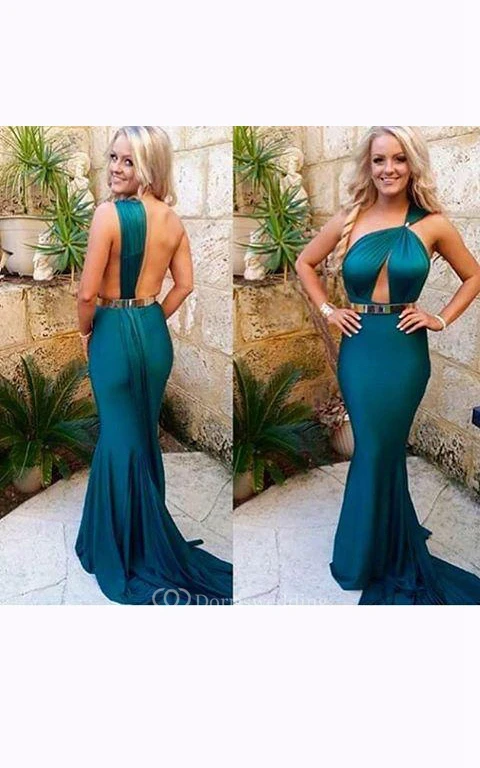 Mermaid Brush Train One-shoulder Backless Satin Dress