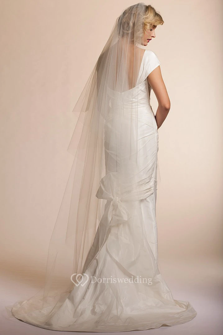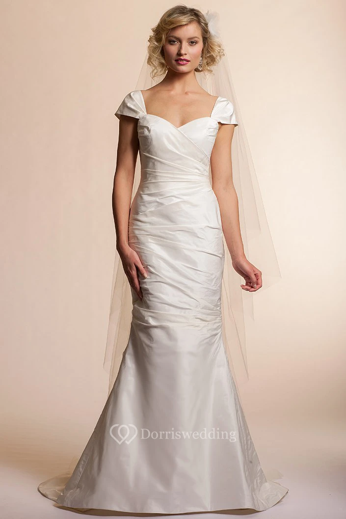 Mermaid Cap-Sleeve Satin Wedding Dress With Bow
