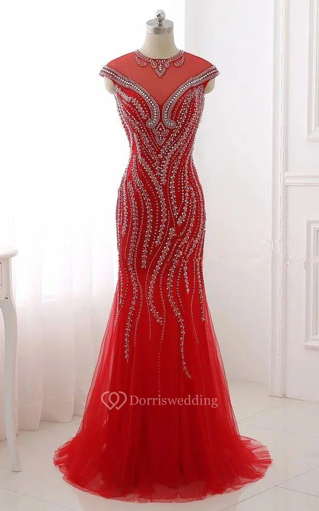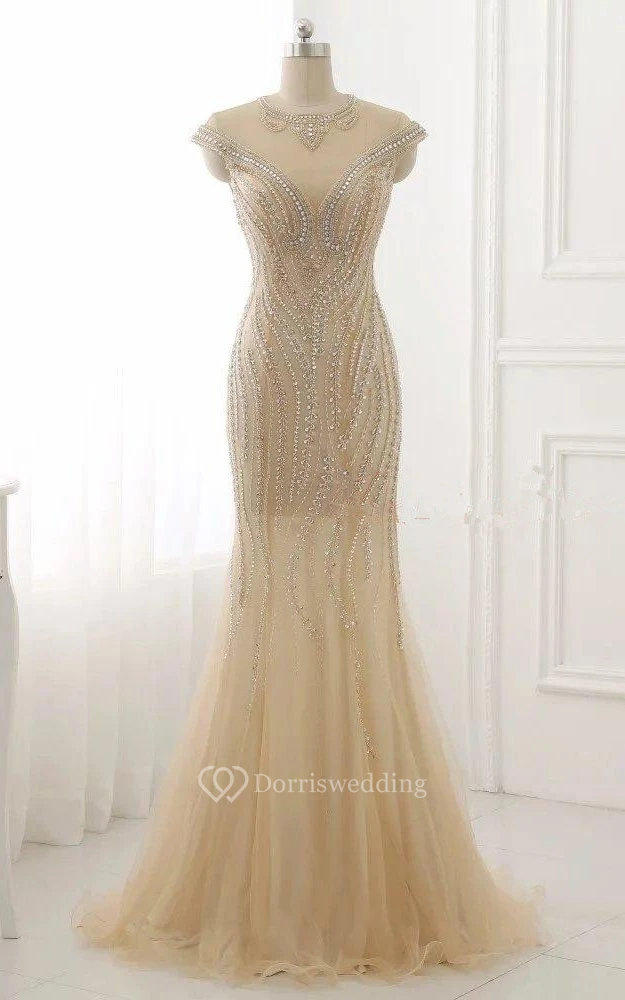 Mermaid Cap Sleeve Tulle Dress With Sequins