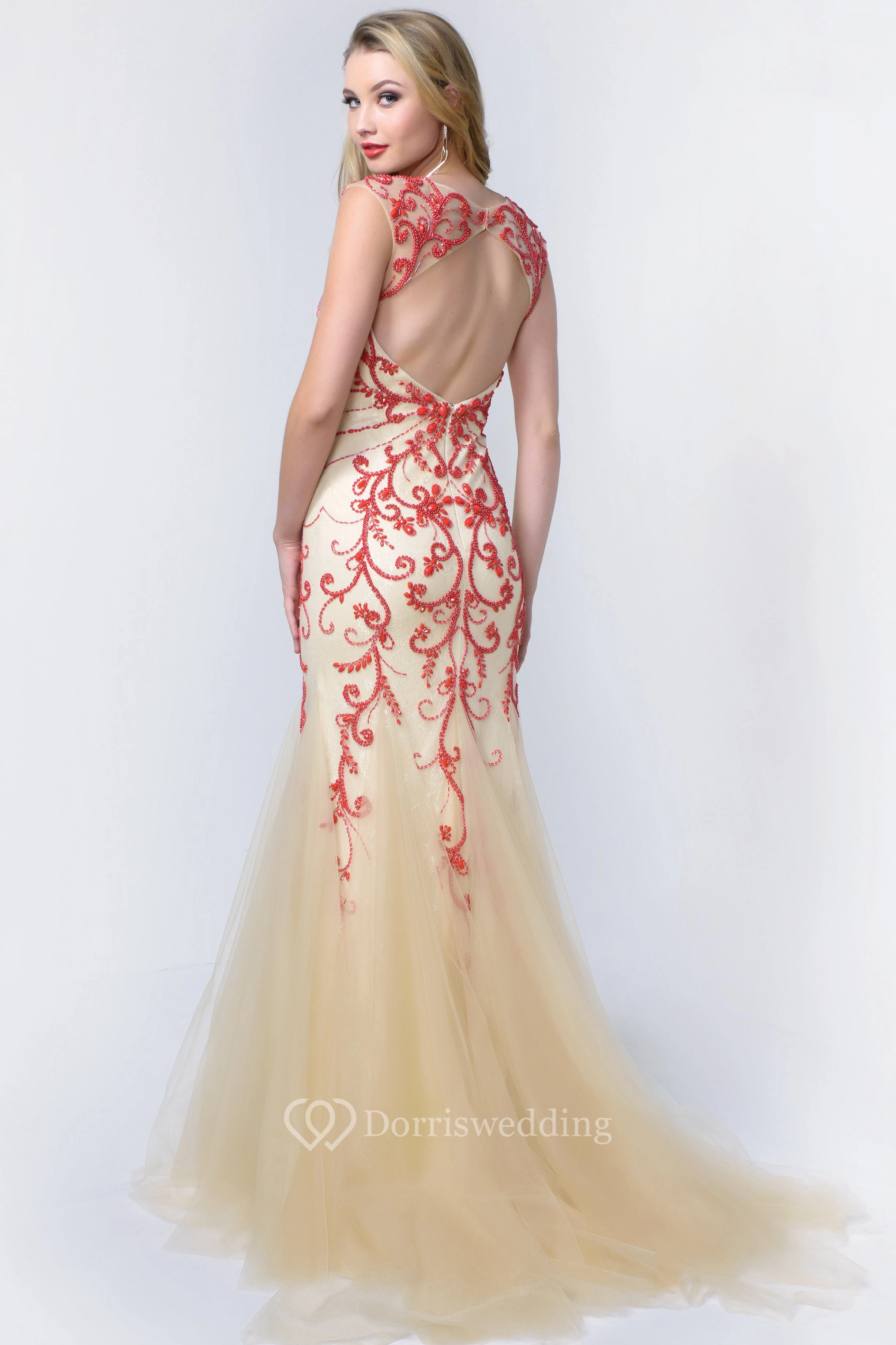 Mermaid Cap-Sleeve Tulle Keyhole Dress With Lace And Beading
