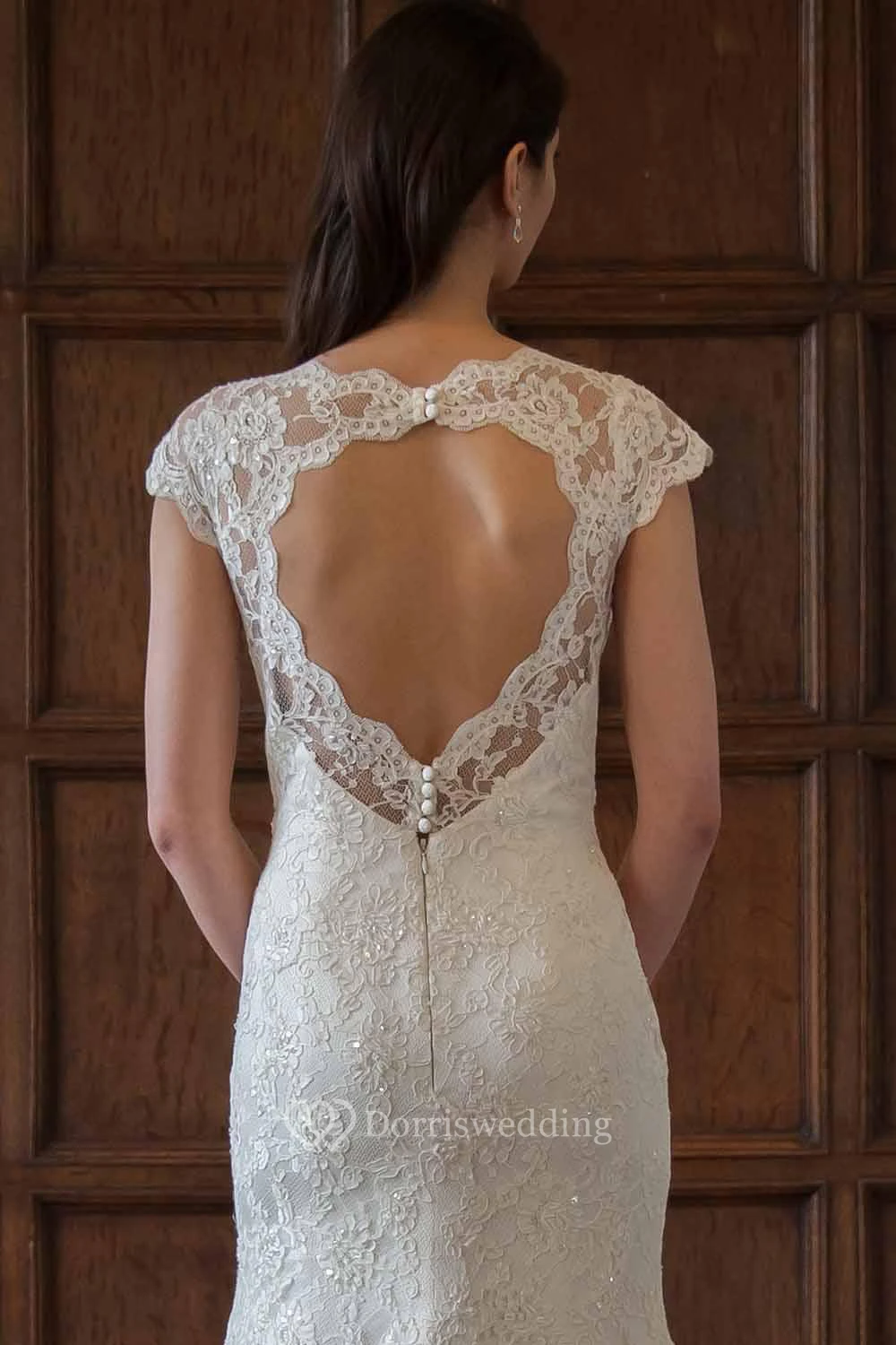 Mermaid Cap-Sleeve V-Neck Lace Wedding Dress With Keyhole