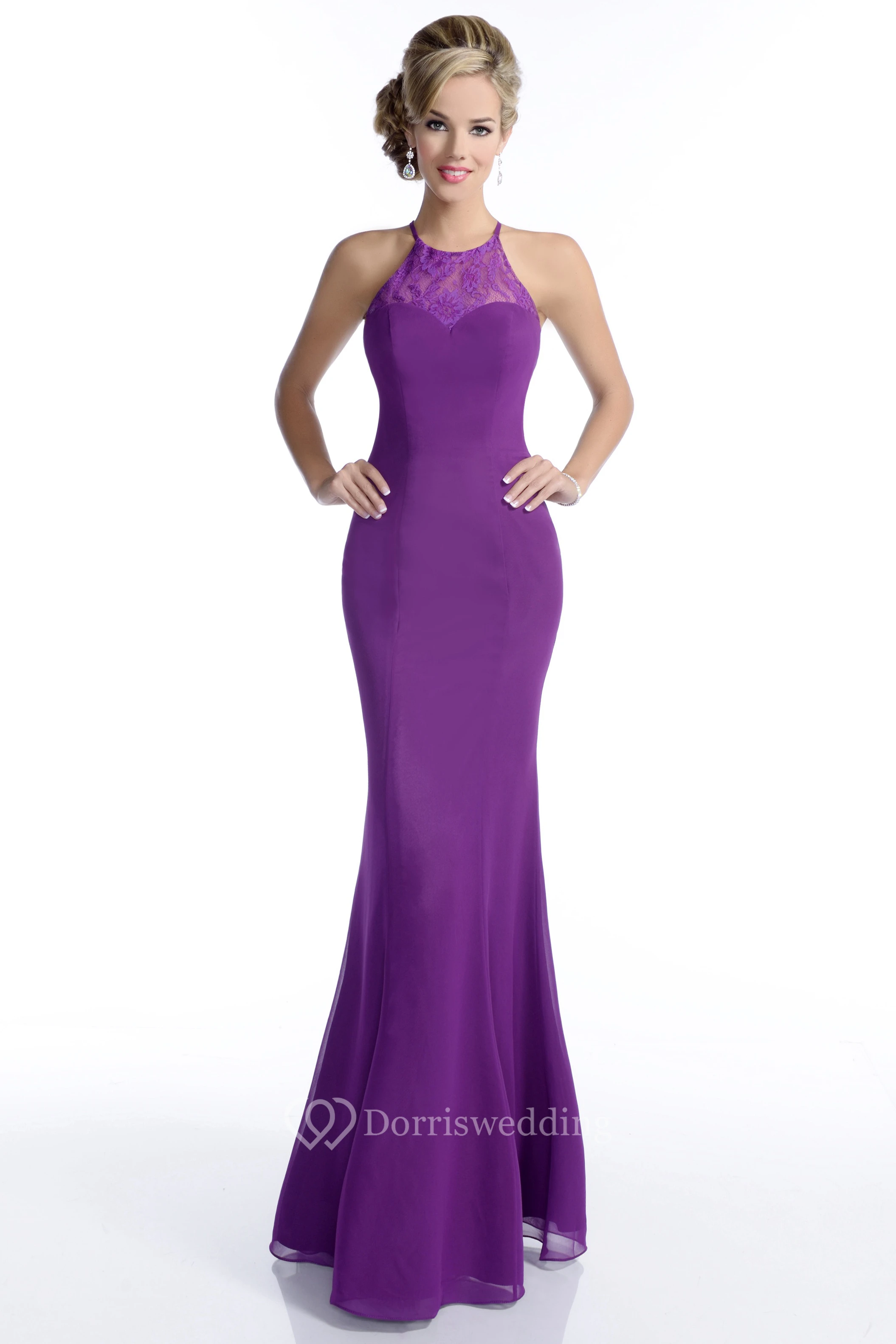 Mermaid Chiffon Bridesmaid Dress Featuring Lace Top And Halter